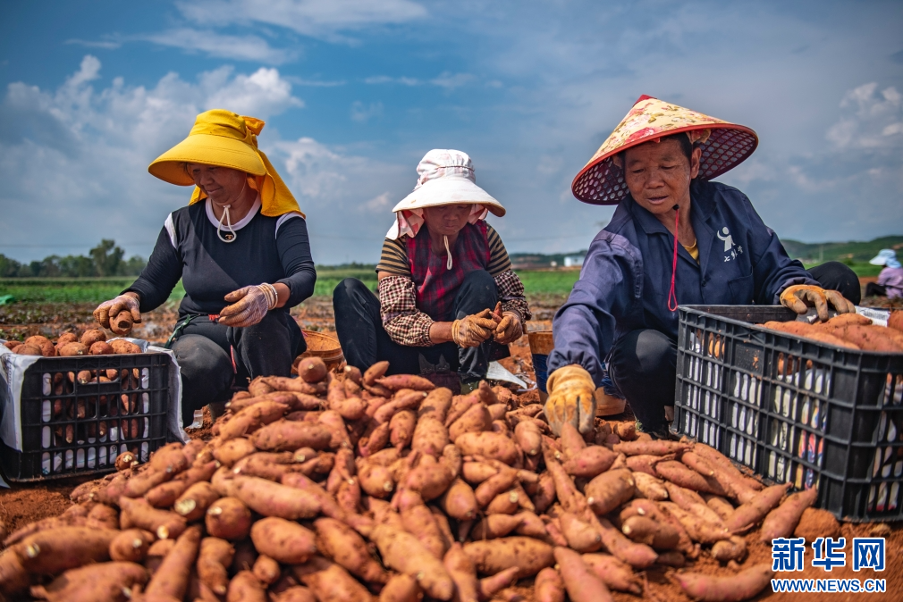 在云南省硯山縣石碑寨村,村民忙著采收、分揀紅薯(8月17日攝)。新華網發(熊平祥 攝)
