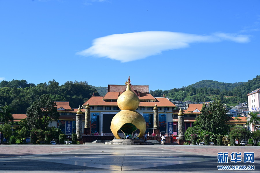 瀾滄縣民族團結進步廣場一景(8月26日攝)。新華網發(劉起 攝)