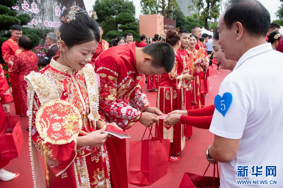銀婚夫婦為新人頒發結婚證書(8月29日攝)。新華網發(供圖)