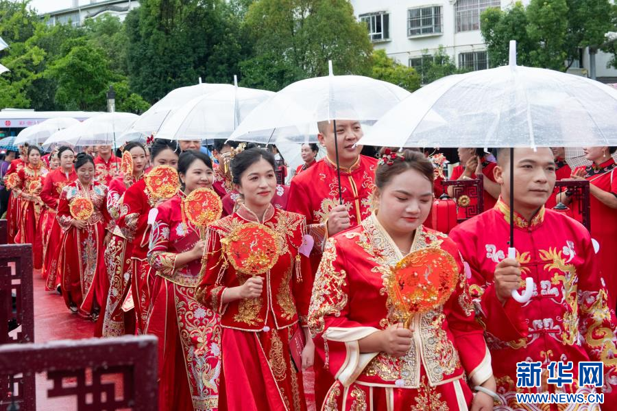 新人攜手踏上紅毯(8月29日攝)。新華網發(供圖)