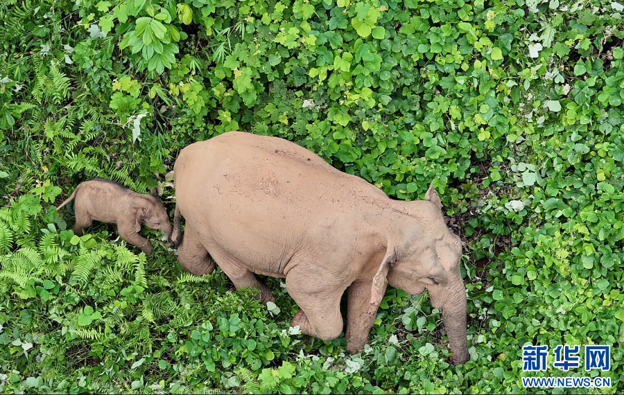 新生幼象跟隨母象一同活動(視頻截圖)。新華網發(臨滄市融媒體中心 供圖)