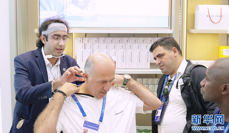 嘉賓現場體驗中醫藥文化(9月7日攝)。新華網發(張漢超 攝)