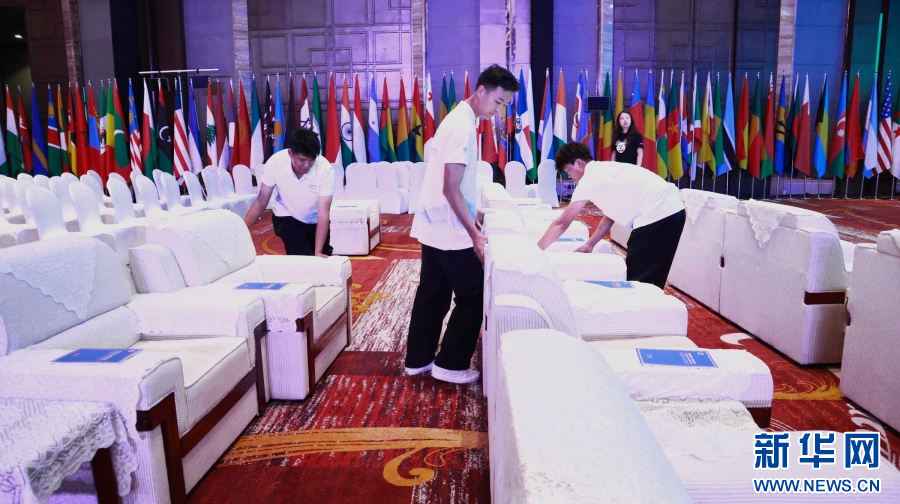 志愿者協助論壇會場布置(9月5日攝)。新華網發(云南省志愿者協會 供圖)