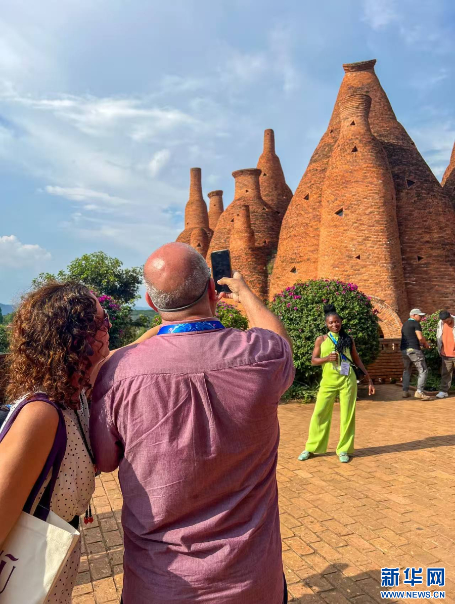 嘉賓在紅磚建筑拍照留念(9月8日攝)。新華網發(楊楨宇 攝)