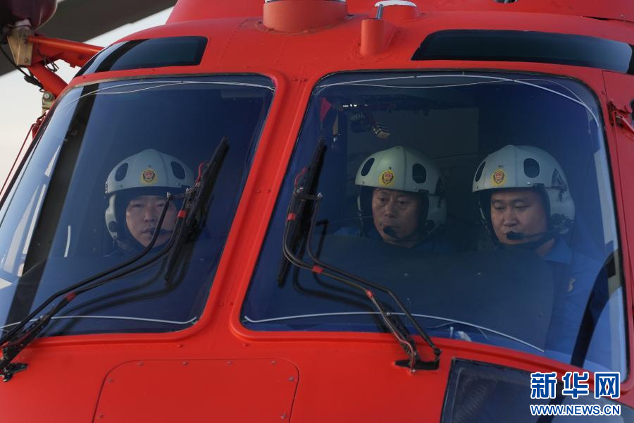 機組成員正在啟動直升機(9月4日攝)。新華網發(駱銀文 攝)