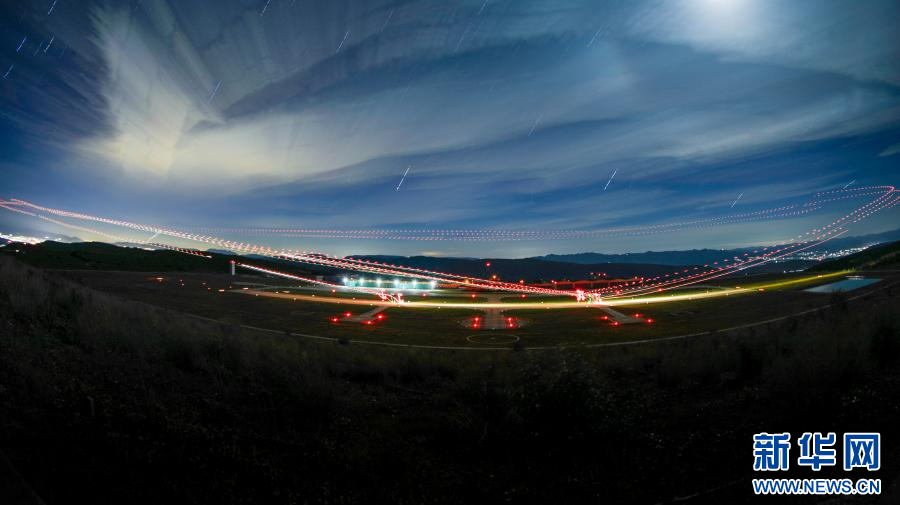 夜空下的直升機飛行航跡(9月4日攝)。新華網發(張宇 攝)