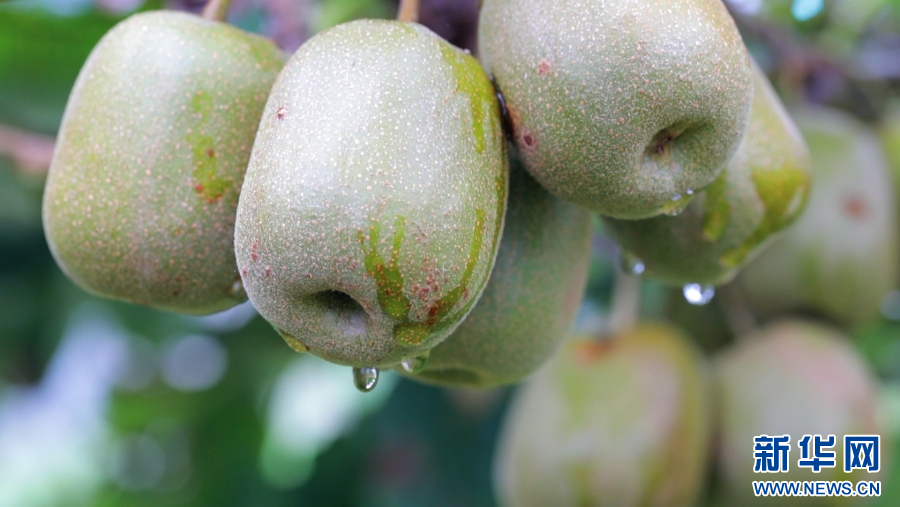 晨露下的獼猴桃(9月5日攝)。新華網發(李偉建 攝)