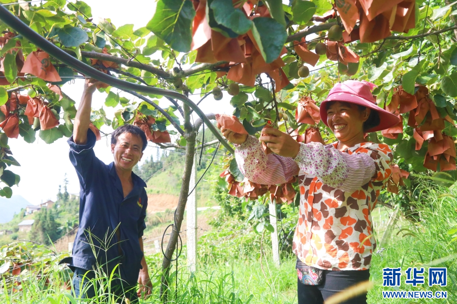 果農采摘獼猴桃(9月5日攝)。新華網發(李偉建 攝)