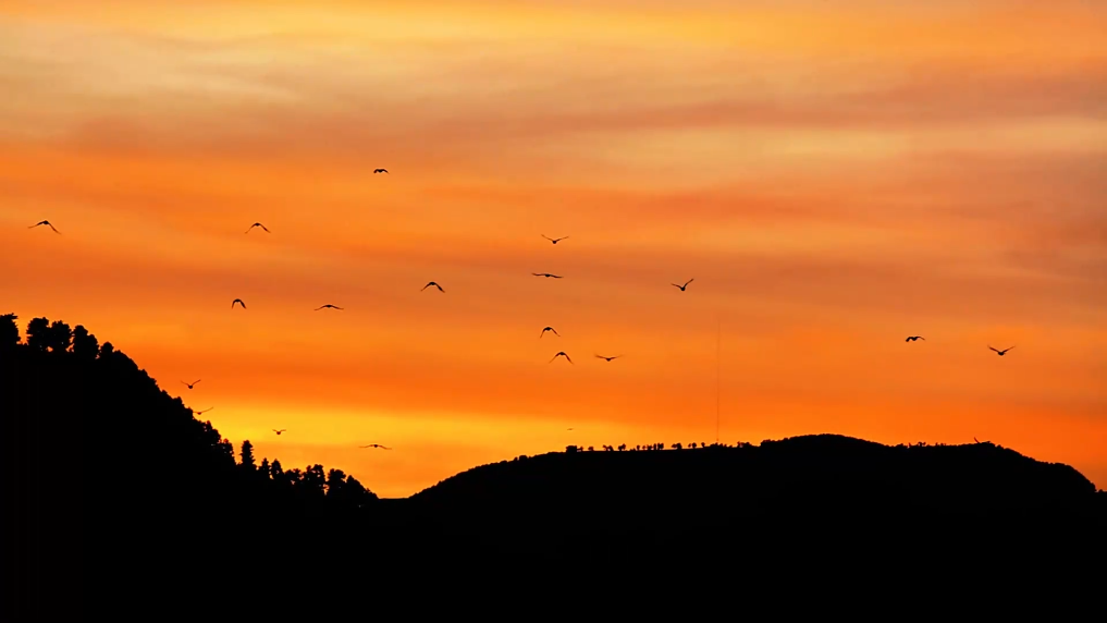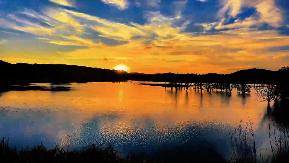近日,攝影師在云南省會澤縣的念湖畔拍攝了日落美景。夕陽西沉,霞光浸染天際,湖面泛起金色漣漪。群鳥翩躚飛越,霞光與云影和水紋交織,構成一幅美麗和諧的秋景圖。