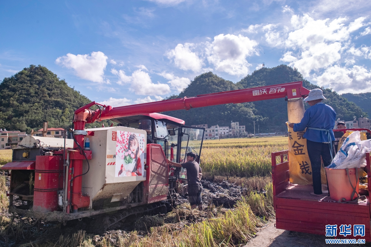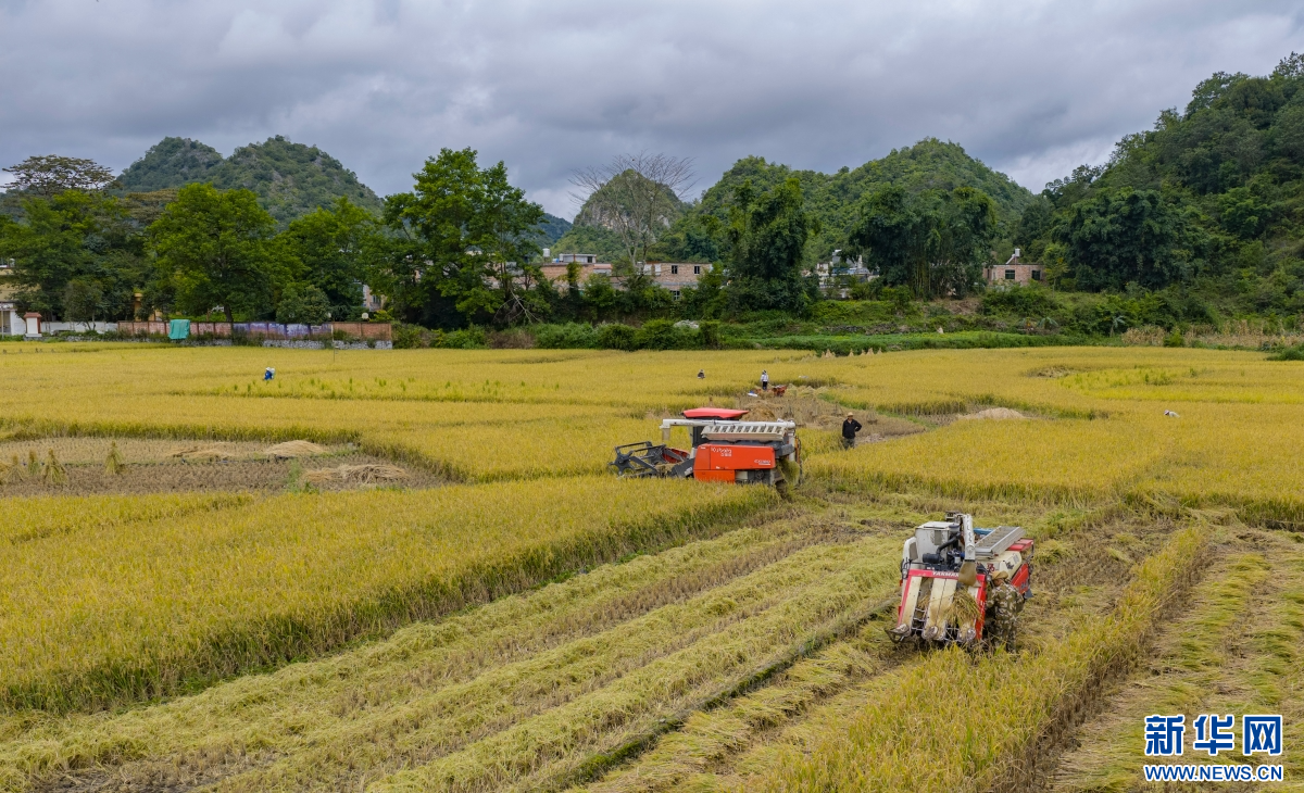 秋日里,走進云南省文山壯族苗族自治州廣南縣八寶鎮,八寶米進入集中收割期。稻浪翻滾,金穗飽滿,收割機穿梭在田野間,處處洋溢著豐收的喜悅。稻田、屋舍、峰林共同組成一幅美麗的田園畫卷。