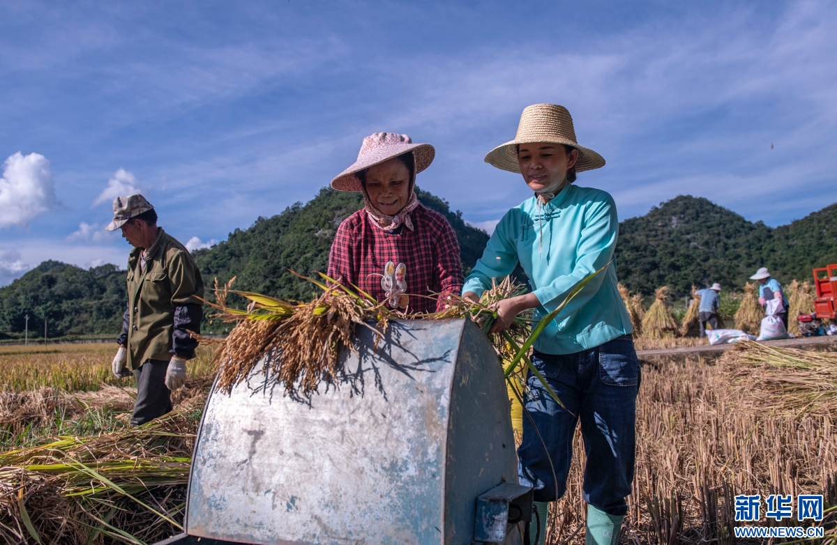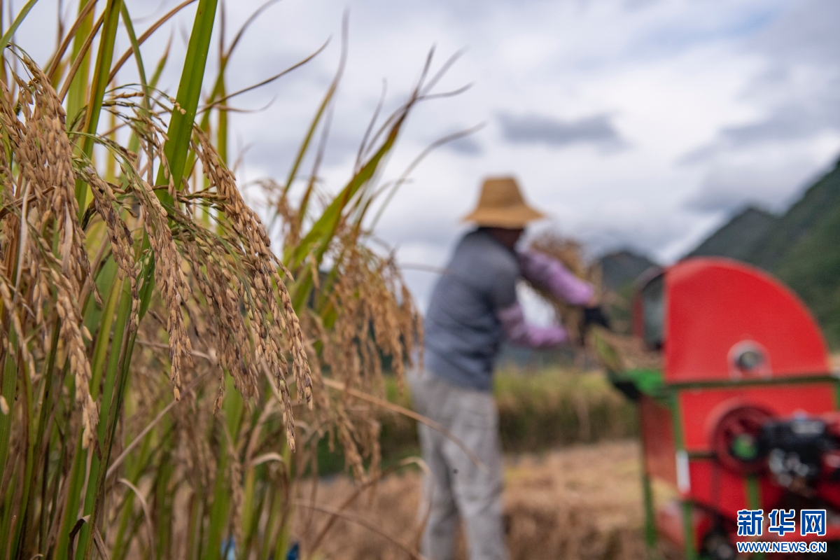 云南省廣南縣八寶鎮,八寶米進入集中收割期,農戶收割稻谷(9月15日攝)。新華網發(熊平祥 攝)