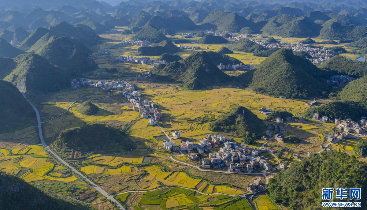 云南省廣南縣八寶鎮,稻浪翻滾繪豐收圖景(9月15日攝)。新華網發(熊平祥 攝)