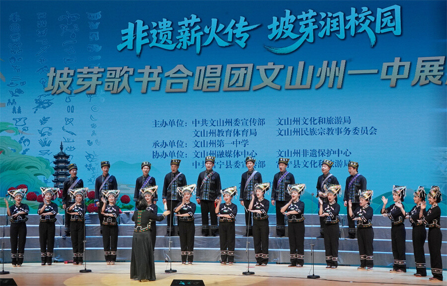 據介紹,坡芽歌書合唱團9月中旬在文山市開展巡演活動,旨在依托文山壯族苗族自治州豐富的民族文化資源,特別是坡芽歌書的獨特魅力,通過“非遺進校園、進機關、進社區”的形式,充分展示坡芽歌書文化瑰寶,弘揚中華優秀傳統文化,促進非物質文化遺產的傳承、保護與發展,增強全州各族干部群眾的文化自信與民族凝聚力,助力文山州民族團結進步示范區和文化強州建設。