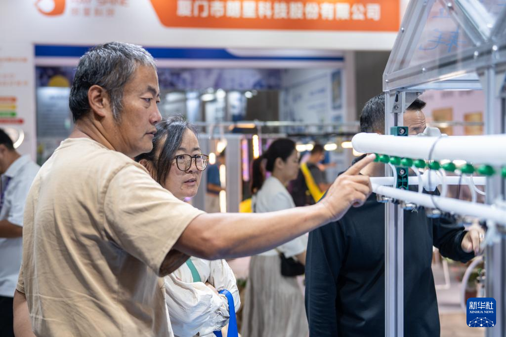 9月19日,觀眾在第二十三屆中國昆明國際花卉展了解溫室氣霧設備。新華社記者 高詠薇 攝