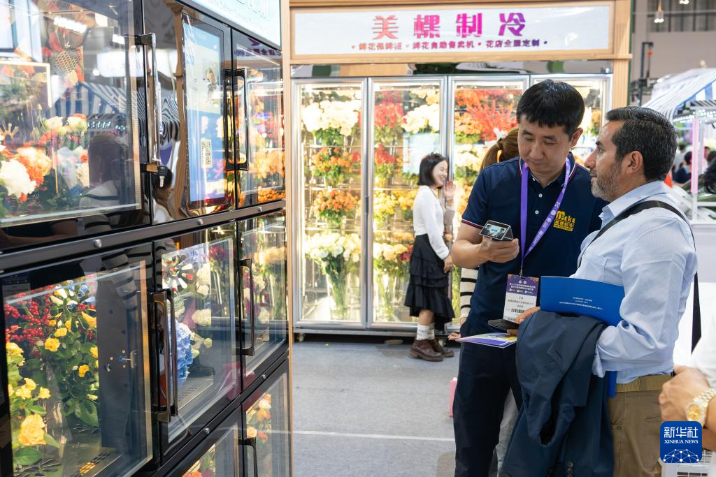 9月19日,參展商在第二十三屆中國昆明國際花卉展洽談業務。新華社記者 高詠薇 攝