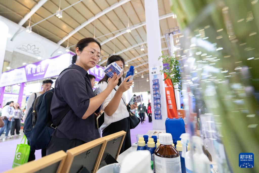 9月19日,觀眾在第二十三屆中國昆明國際花卉展了解鮮花保鮮產品。新華社記者 高詠薇 攝