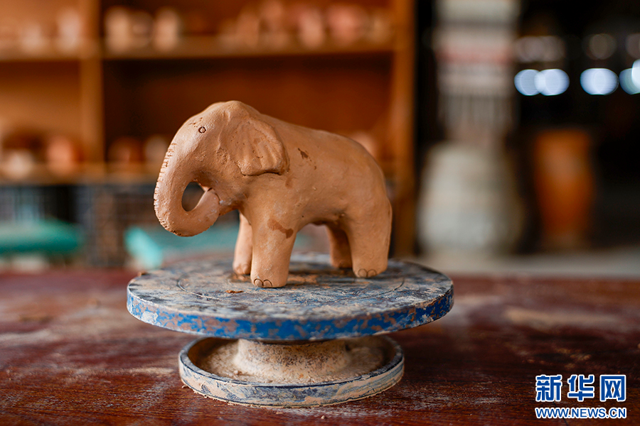 用慢輪制陶技藝制作的大象作品(3月8日攝)。新華網發(徐華陵 攝)
