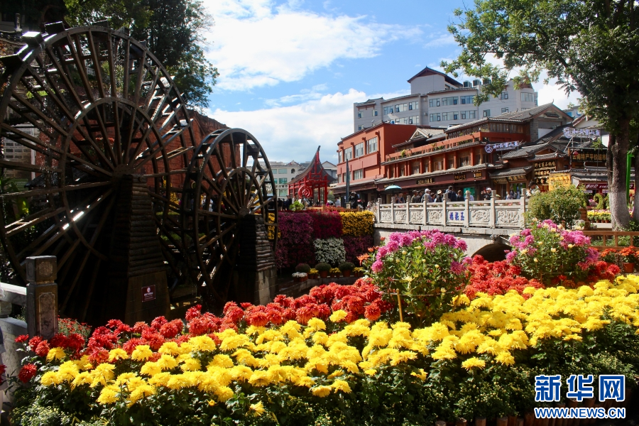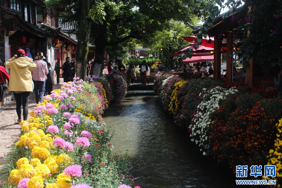 鮮艷的菊花裝點麗江古城(9月29日攝)。新華網發