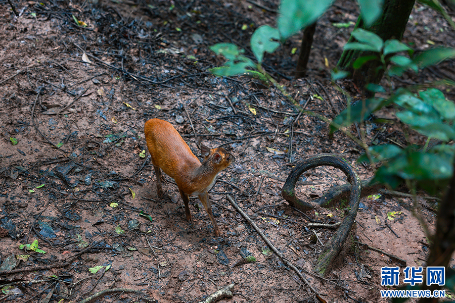 在野外時刻保持警惕的赤麂(7月7日攝)。新華網發(徐華陵 攝)
