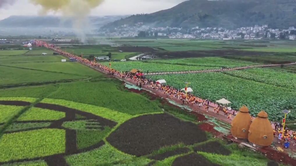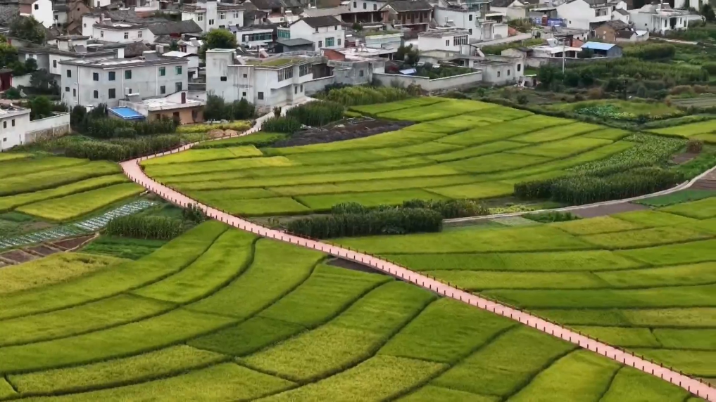 金秋時節,云南省曲靖市會澤縣娜姑鎮白霧村的千畝稻田一片豐收景象,群山環抱的稻田與錯落有致的村莊構成一幅秀美的田園畫卷,吸引大量游客前來觀光打卡。