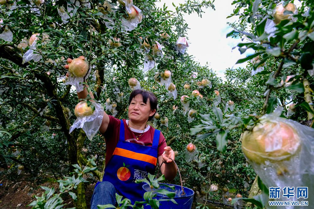 采收石榴(10月3日攝)。新華網發(張洪科 攝)