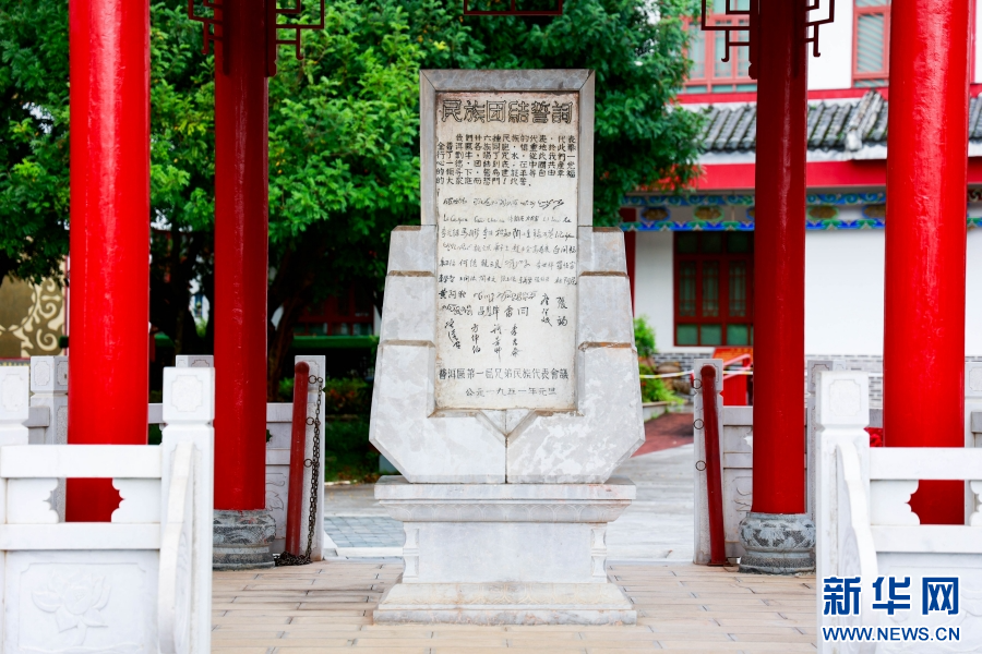 民族團結誓詞碑巍然矗立(8月5日攝)。新華網發(劉云 攝)