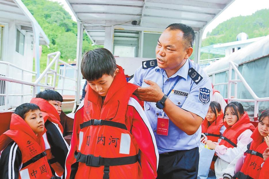 魯布革鄉應急管理站負責人藺如賢介紹,14年來,免費校船年均運送學生5.2萬人次,從未有安全事故發生。此外,魯布革鄉還組織專門人員在碼頭教授救生技能、發放安全讀本,將船舶變成流動的安全課堂。云南三江航運公司根據實際需求,創新采用“大船+小船”接駁模式,大船負責主干航線運輸,小船深入支流岔道,實現點對點精準服務。航行途中,安全員全程巡視,及時關注學生狀況。