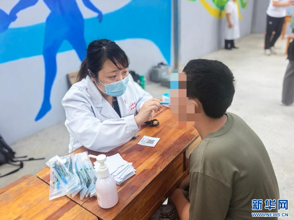 口腔科專家在義診現場為當地學生做口腔檢查。新華社記者 李恒 攝