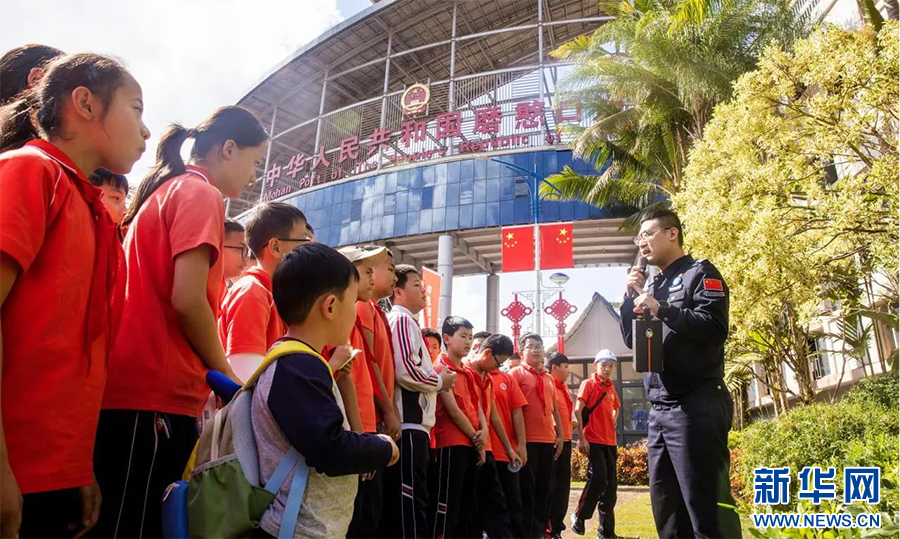 在磨憨出入境邊防檢查站開展愛國主義教育主題宣講(資料圖)。新華網發