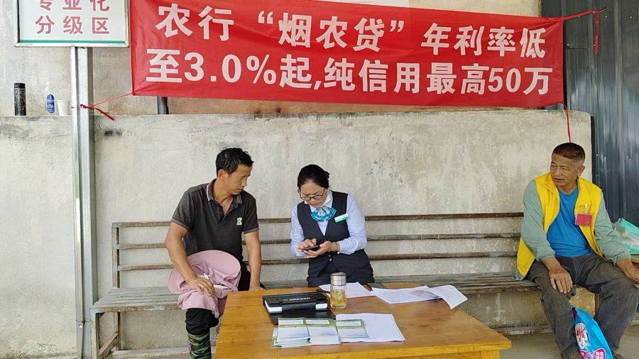 工作人員為煙農提供“一站式”服務(9月14日攝)。周寸偉 攝