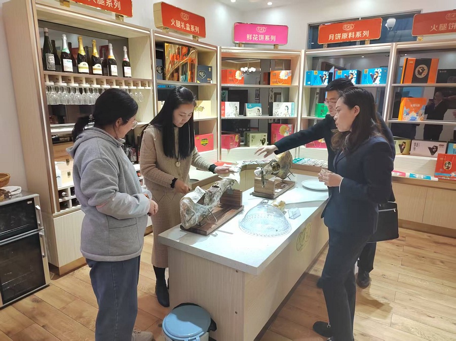 金融機構工作人員與火腿銷售方溝通交流(資料圖)。