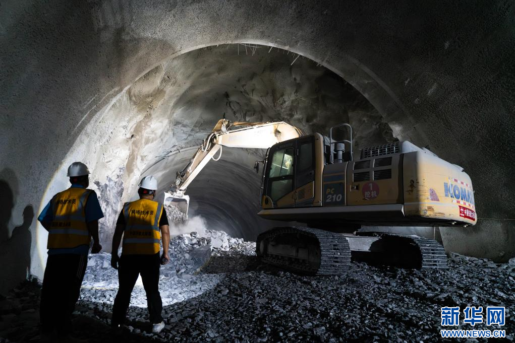 11月6日,施工人員在彝良隧道右線作業。新華社記者 高詠薇 攝